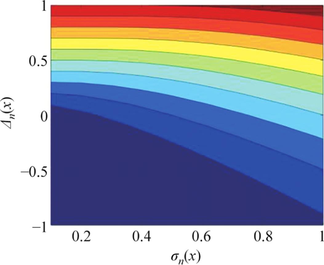 图2.3 EI n x )在 Δ n x )和后验标准差 σ n x )的等高线