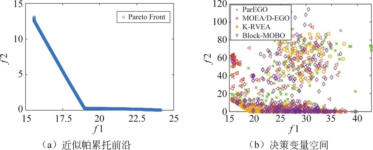图8.3 带有偏好信息的汽车驾驶室设计问题的近似帕累托前沿和决策空间