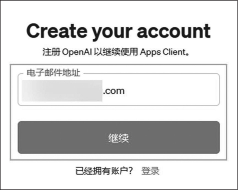 步骤02 设置账号与密码。此时会打开一个注册页面,在“电子邮件地址”文本框中输入电子邮件地址,单击“继续”按钮,如图1.3所示。