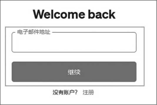 在“电子邮件地址”文本框中输入已注册的电子邮件地址,然后单击“继续”按钮,如图1.8所示。