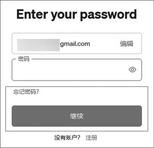 在“密码”文本框中输入登录密码,单击“继续”按钮,如图1.4所示。
