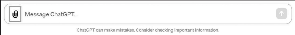 步骤05 上传文件。ChatGPT 4.0版本支持上传文件,单击对话框左侧的“上传”按钮,即可向ChatGPT发送相应的文件(包括图片、文档等),如图1.16所示。