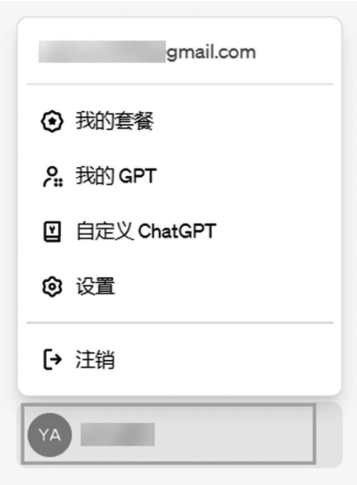 步骤07 账号设置与管理。单击ChatGPT界面左下方的用户名会弹出一个列表,如图1.19所示。