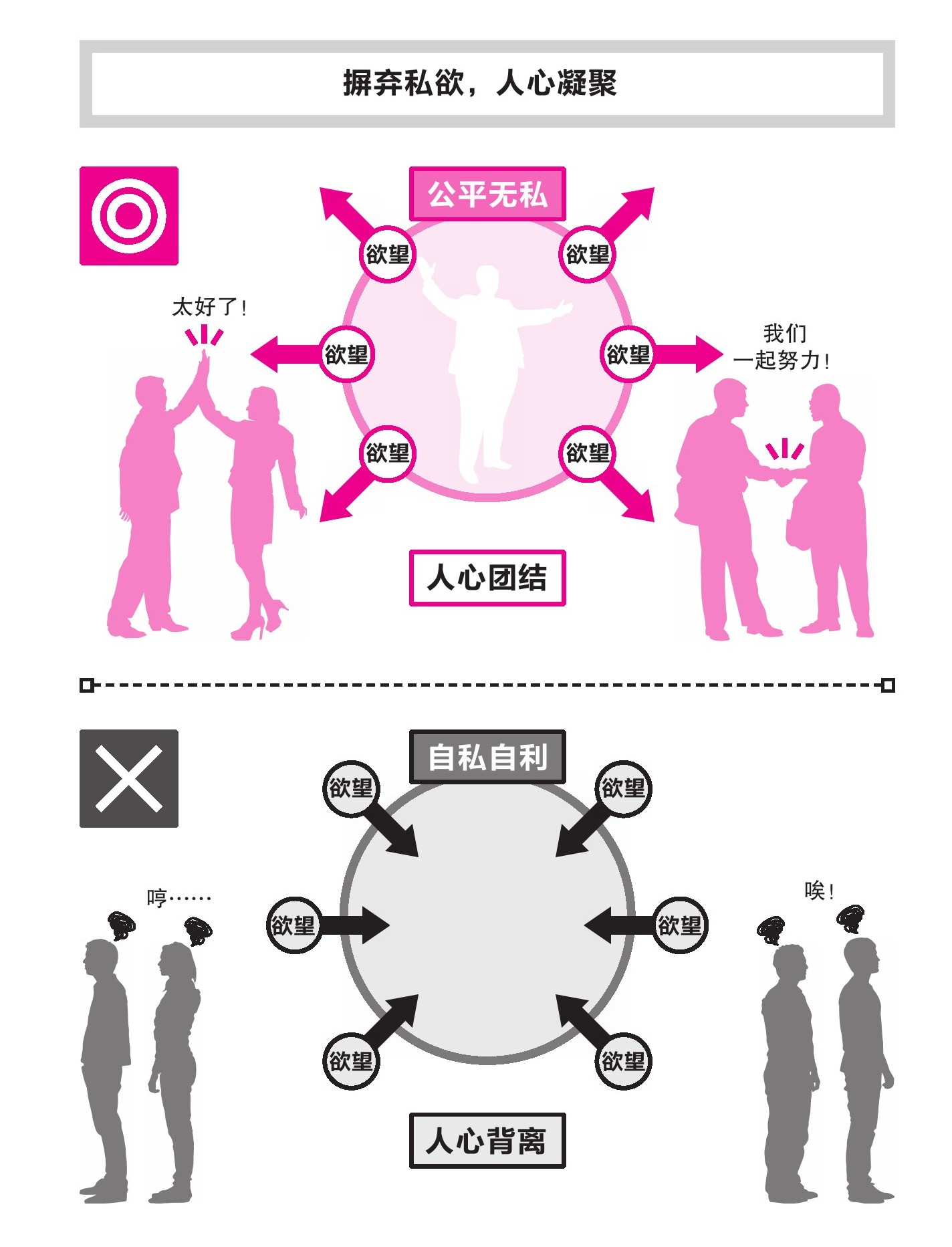 而若想让员工人心所向,打造“由彼此信赖的伙伴所组成的集体”,经营者便不可溺于私利私欲,必须约束自我、摒弃私心,拥有“为集体拼命奉献”的利他觉悟。