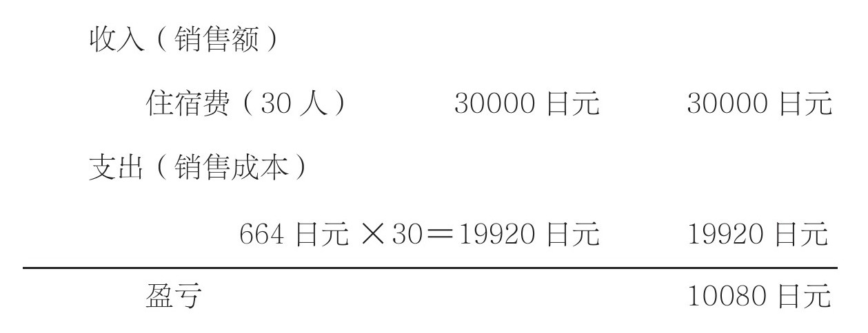 这样一来,每年的平均固定成本就变成了每人364日元左右。那么,夏季的成本就变成了300(日元)+364(日元)=664(日元)。因此,夏季收1000日元的住宿费也完全没有问题。