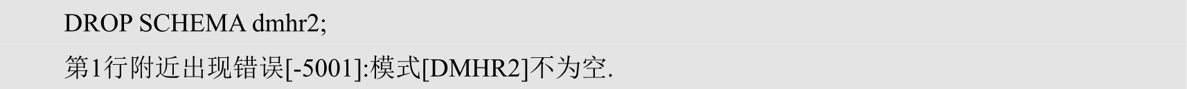 该命令执行成功,因为使用CASCADE选项会将整个模式、模式中的对象及其依赖关系全部删除。为了不影响后续操作,重新创建DMHR2模式及相关表。