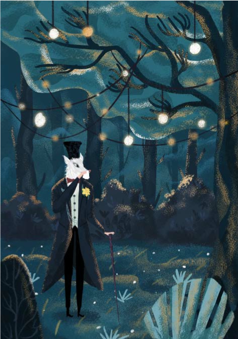 只见绀三郎穿着一身非常气派的燕尾服,胸前插着水仙花,还时不时地掏出一块洁白的手帕擦一擦它那尖尖的嘴。