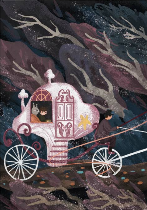 马车飞快地驶离了草地。树木和野草如袅袅升起的炊烟般,在风中摇摆着。一郎看着黄金橡子,山猫则仿佛什么都没看见一样,无言地看着远方。