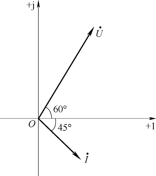 =10∠-45°A。电压相量和电流相量的模可按照各自确定的比率选取,相量图如图2-15所示。