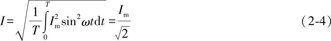 式(2-3)表明,交流电的有效值是瞬时值的方均根值。