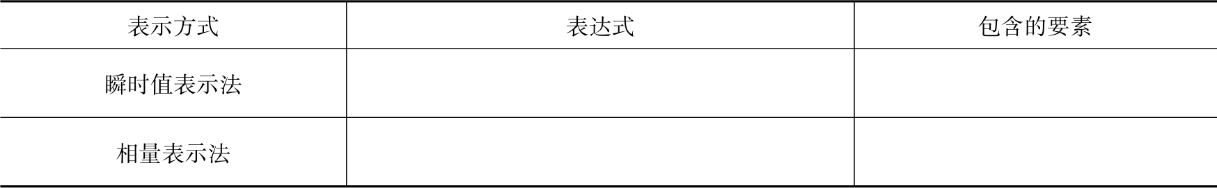 2)正弦交流电参数的表示方式有哪些?分别包含哪些要素?完成表2-2(以正弦交流电压为例)。