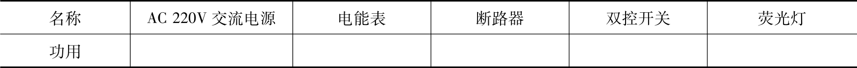 表2-5 双控开关控制荧光灯电路中各元器件的功用