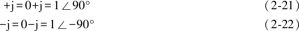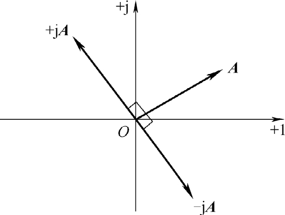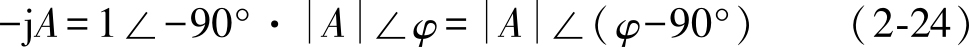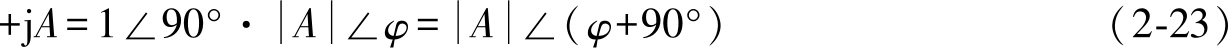 以上计算表明,任意一个复数 A 乘以+j,其模不变,辐角增加90°,对应的矢量逆时针方向旋转90°,如图2-13所示。