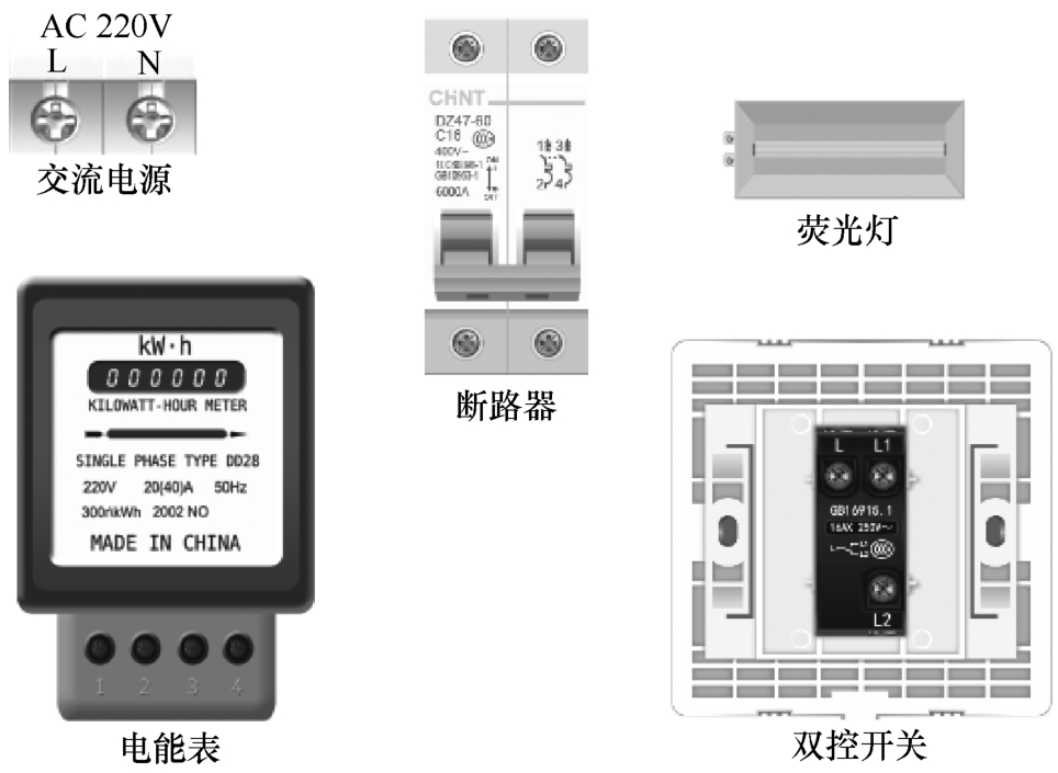 图2-1 家庭照明电路元器件图