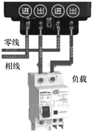 家用单相电能表接线方法:四个接线柱,从左到右分别接相线进线、相线出线、零线进线、零线出线。例如,从左往右分别是端子1、2、3、4。端子1、2接相线,一般1进2出;端子3、4接零线,一般3进4出,如图2-18所示。