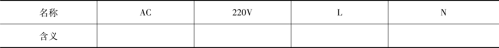 1)图2-2中AC 220V电源中AC的含义是什么?220V指的是什么值?符号L和N各表示什么?完成表2-1。
