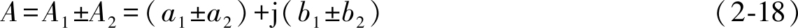 在复数坐标平面上,复数 A 与一个确定的点相对应。该点在实数轴(横轴)和虚数轴(纵轴)上的投影分别是 a 和 b ,如图2-12所示。