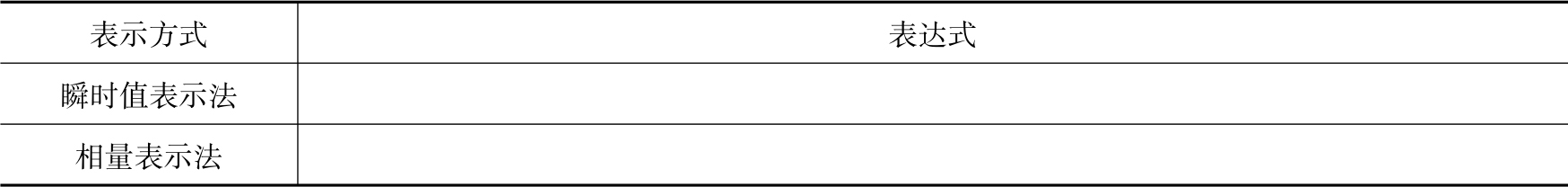 3)假设图2-2中的交流电源的初相角为0°,用瞬时值表示法和相量表示法写出该交流电源的表达式(见表2-3)。