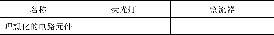 8)荧光灯中的灯管和整流器用理想化的元器件模型来等效,填入表2-6,将荧光灯的电路模型绘制在图2-5中。