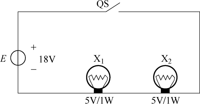 2.如图1-35所示,直流电源 E 为18V,两个5V/1W的白炽灯X 1 、X 2 ,QS为开关。