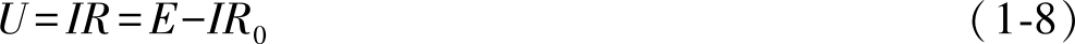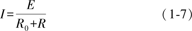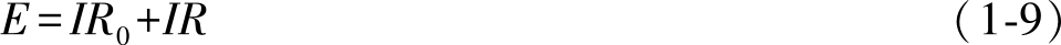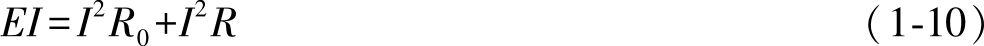 式(1-10)表明,电源产生的总电功率 P E = EI ,是电源内阻 R 0 和负载 R 吸收电功率之和,满足功率平衡关系。