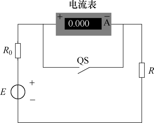 除了电源短路之外,有时还根据需要,将电路的某一部分或某一元件短路。如图1-33所示,当不需要测量电流时,可以用闭合开关QS的方法,将电流表短路,以保护电流表。