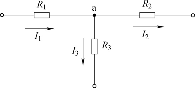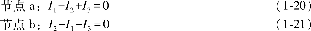 以图1-39所示电路中的a节点为例, I 1 流入该节点, I 2 、 I 3 流出该节点,所以有