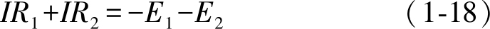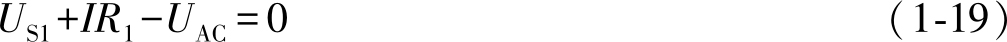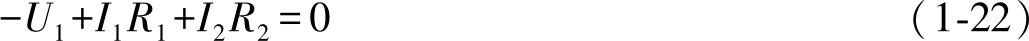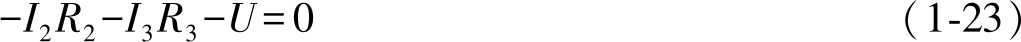 同样,式(1-17)中代数量的正、负号也有规定:电流 I 的参考方向与绕行方向一致的,电阻电压降 IR 取正号;反之,电流 I 的参考方向与绕行方向相反的,电阻压降 IR 取负号。当电压源电动势的方向与绕行方向一致的,取正号;反之,取负号。