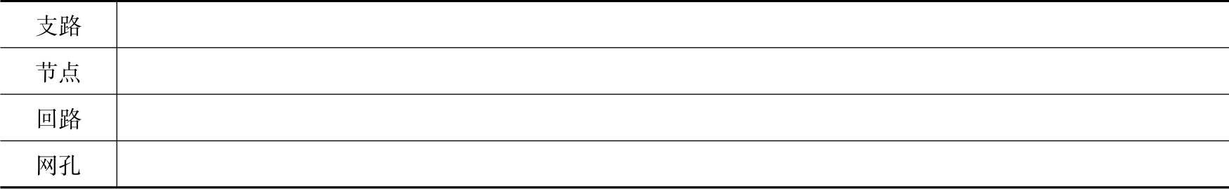 表1-11 复杂电路中的支路、节点、回路和网孔