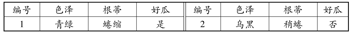 习题1.2 给定包含两个西瓜样例的西瓜数据集,如表1.4所示,请结合教材1.3节对“假设空间”相关概念的介绍,回答以下问题: