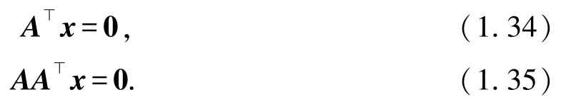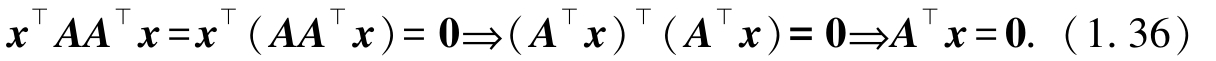 利用矩阵乘法的结合律,可以得到 A ( A ⊥ x )= 0 . 所以 A ⊥ x =0 的解均为 AA ⊥ x = 0 的解 . 将式(1.35)两边同时左乘 x ⊥ ,可得