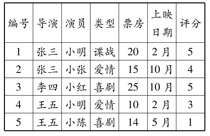 表1.2 电影评分数据集,“评分”列为标记