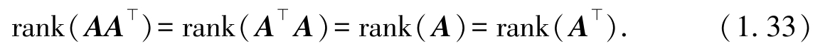 AA ⊥ x = 0 的解均为 A ⊥ x = 0 的解.因此, AA ⊥ x = 0 和 A ⊥ x = 0 具有相同的解空间,rank( AA ⊥ )=rank( A ⊥ ).同理,可以证明rank( A ⊥ A )=rank( A ),再结合rank( A )=rank( A ⊥ ),式(1.33)得证.此外,由于rank( A )≤min( m , d ),因此rank( A ⊥ A )≤min( m , d ) . □