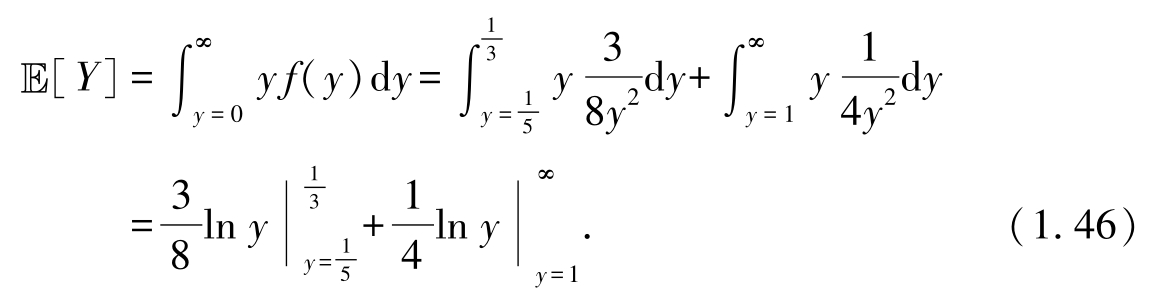 由于式(1.46)第二项涉及了ln y 在 y 为∞时的取值,因此E[ Y ]不存在.