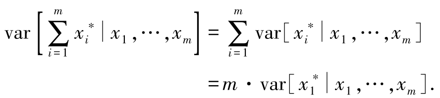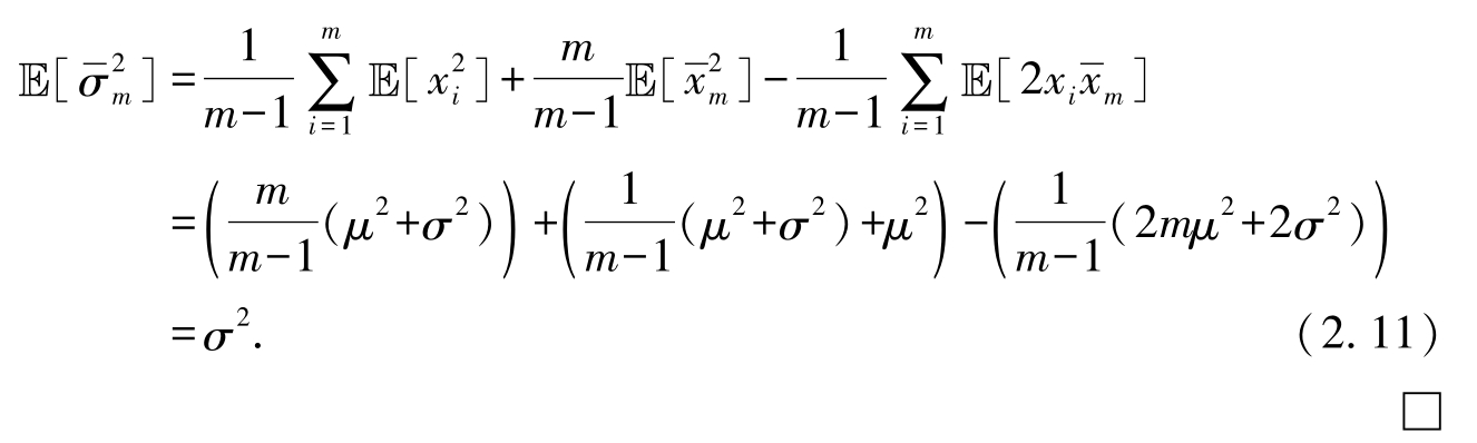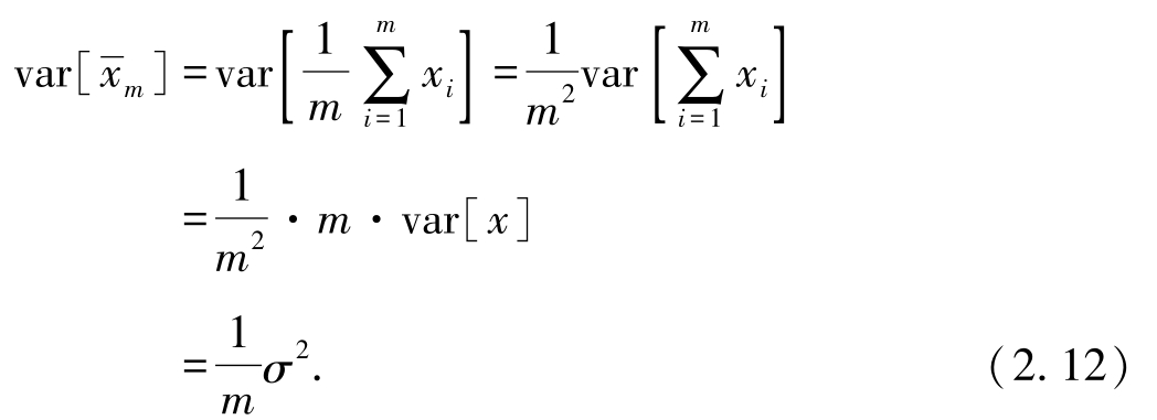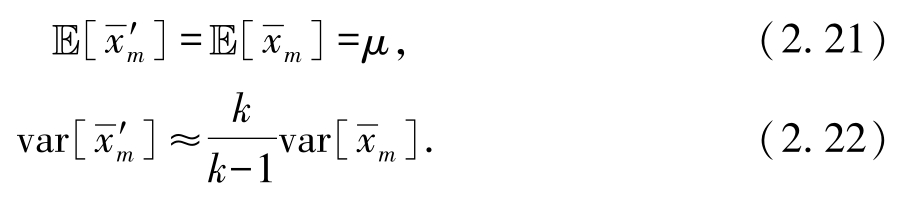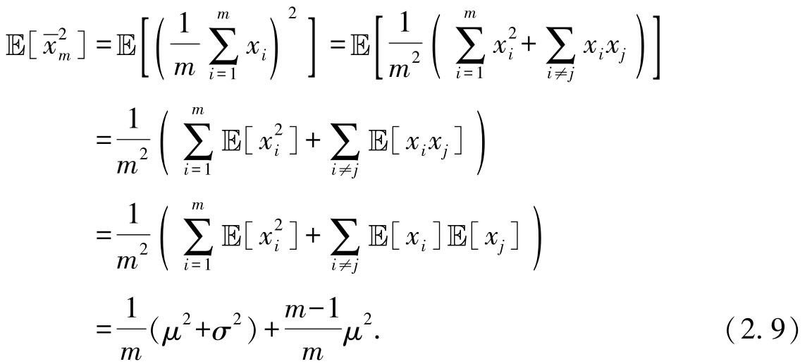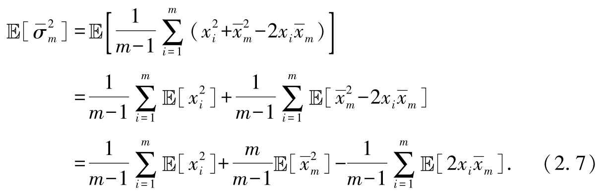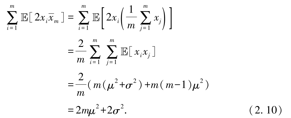 最后一个等式利用了在 m 2 组期望的乘积中,符合 i ≠ j 的共有 m ( m -1)组这一性质.式(2.7)中第三项可变化为