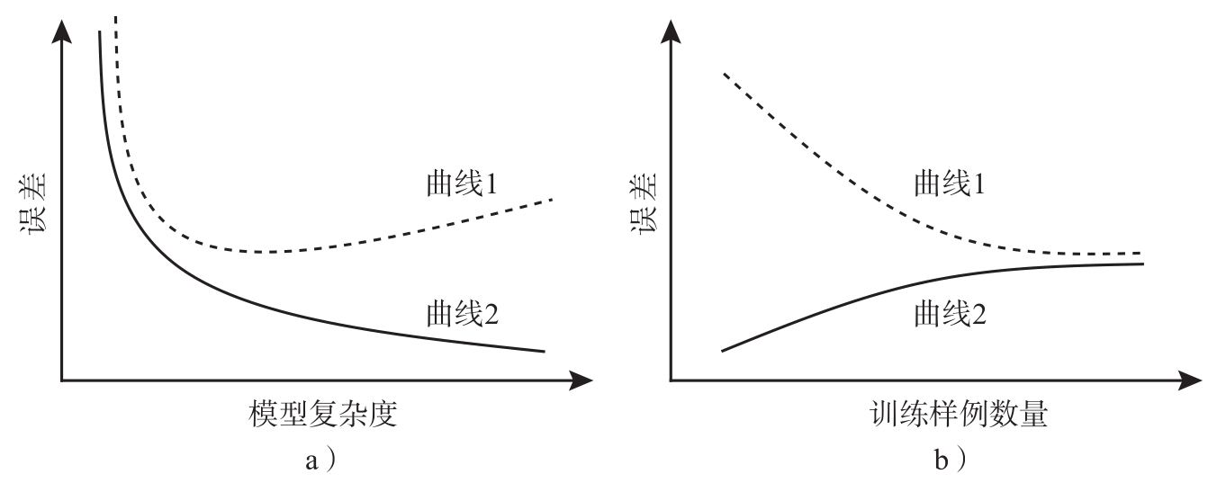图2.2 模型误差随模型复杂度以及训练样例数量的变化