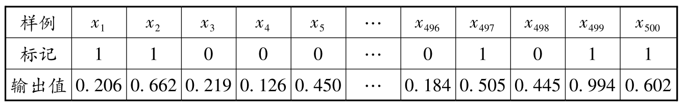 习题2.9 现有500个测试样例,其对应的真实标记和学习器的输出值见表2.11(完整数据见data.csv文件).该任务是一个二分类任务,标记1表示正例,标记0表示负例.学习器的输出值越接近1表明学习器认为该样例越可能是正例(为正例的置信度越高),输出值越接近0表明学习器认为该样例越可能是负例.