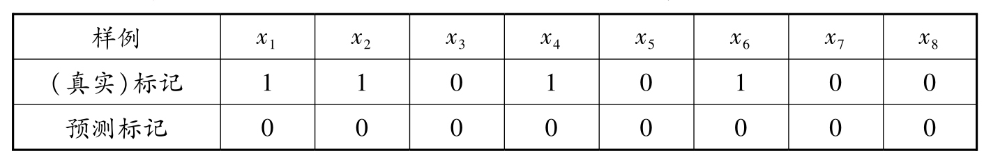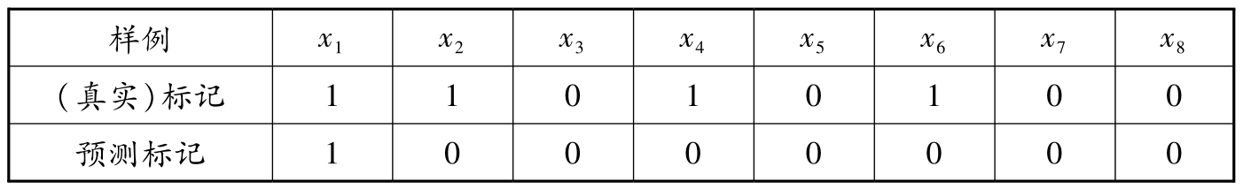 习题2.5 在某个西瓜分类任务的验证集(validation set)中,共有10个样例.其中有3个示例的类别标记为“1”,表示该示例是好瓜;有7个示例的类别标记为“0”,表示该示例不是好瓜.由于学习方法能力有限,只能产生在验证集上精度(accuracy)为0.8的分类器.