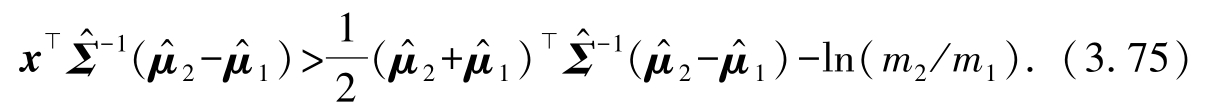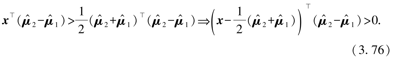 习题注释 本小题考查在LDA的实现中使用经验估计值代替LDA中的各项参数.同时针对LDA在两类情况下的判别能力,考查其判别过程的“线性”特性和几何意义.
