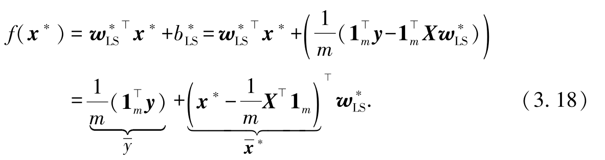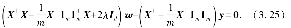 习题注释 本小题主要考查对线性回归模型推导的理解.在求解过程中,需要理解为什么通过设置偏导为0得到最优解,同时也要注意需要联立关于 w 和 b 的偏导为0的等式.矩阵形式的闭式解更加紧凑,也能够作为后续其他模型推导的基础.矩阵的求导方式可参考文献[1].