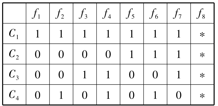 3. 令码长为8,类别数为4,试给出海明距离意义下的最优ECOC编码,并简述构造思路.