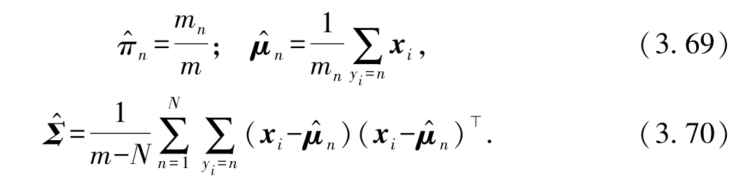 )中独立同分布采样得到,即不假设各类的协方差矩阵相同.请按照习题3.7的第1小题中的思路,给出分类应采用的判别式