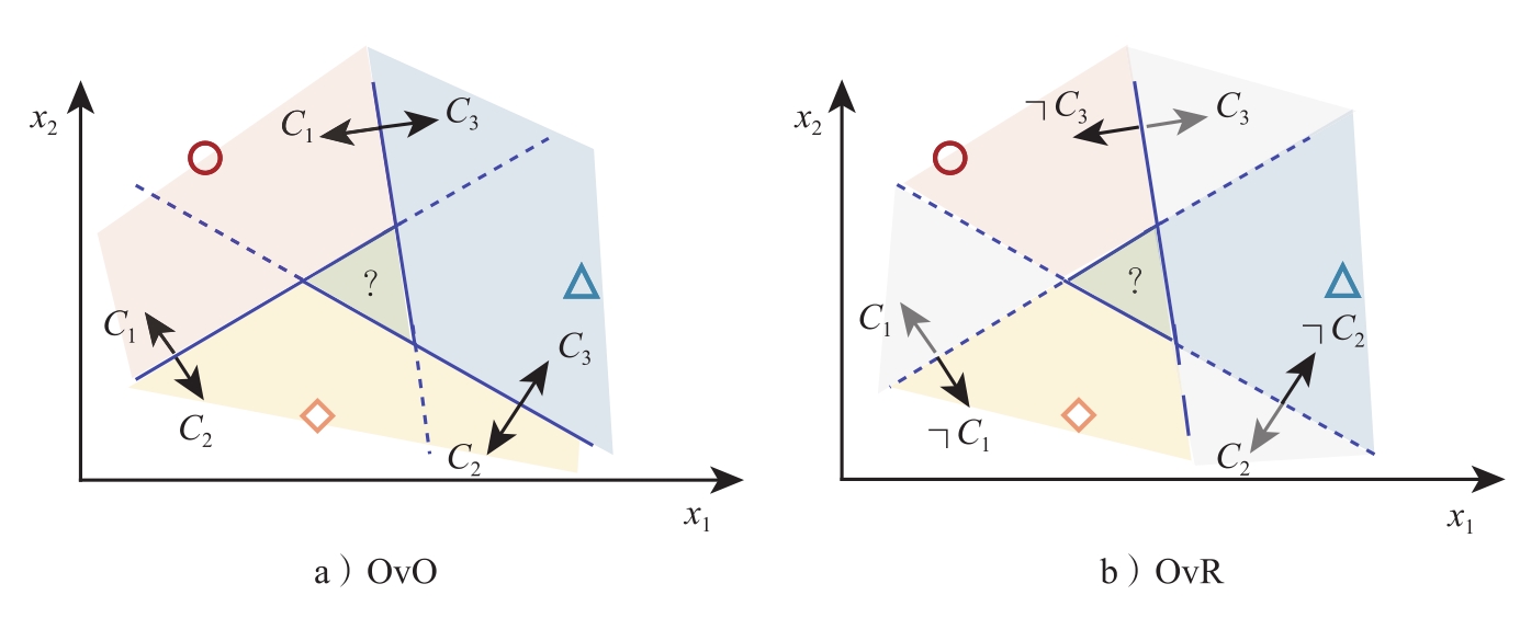 2. 思考这两种多分类推广方式是否存在难以处理的多分类场景.