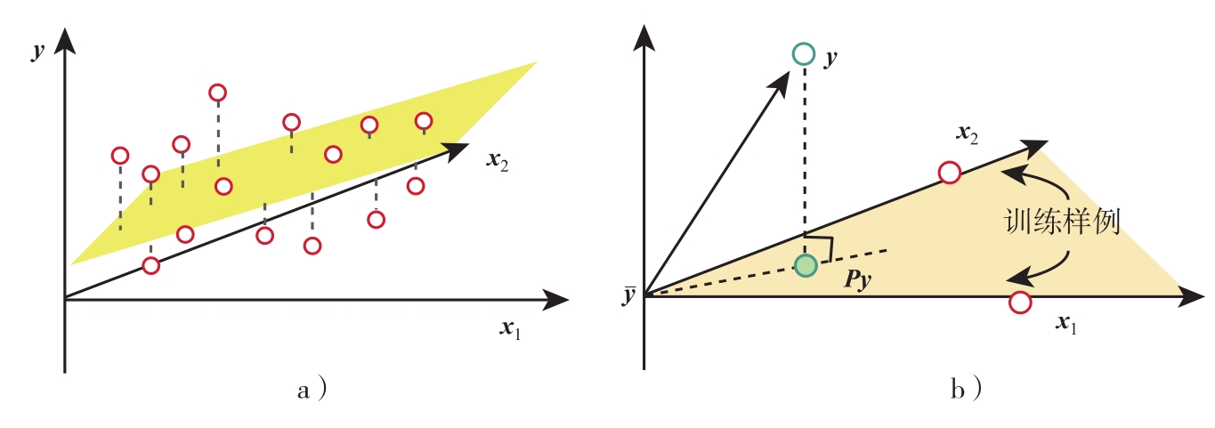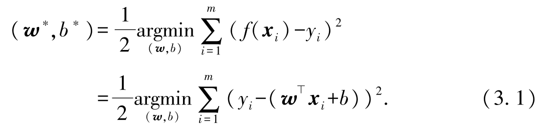 个示例,教材3.2节所介绍的“线性回归”模型要求该线性模型的预测结果和其对应的标记之间的误差之和最小: