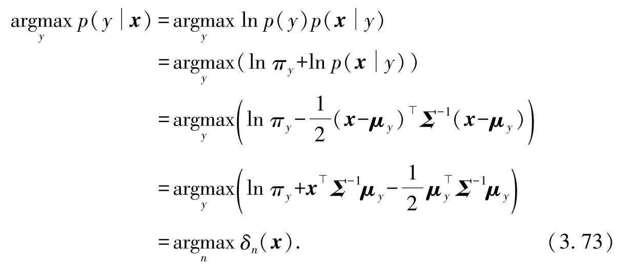 的线性函数,而由习题3.7的第1小题可知,在LDA中,对数几率
