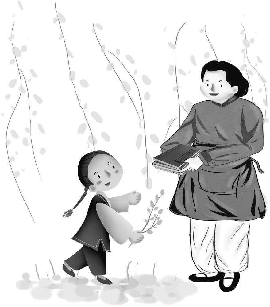 过了十多天,或者一个月罢,我还很记得,是她告假回家以后的四五天,她穿着新的蓝布衫回来了,一见面,就将一包书递给我,高兴地说道: