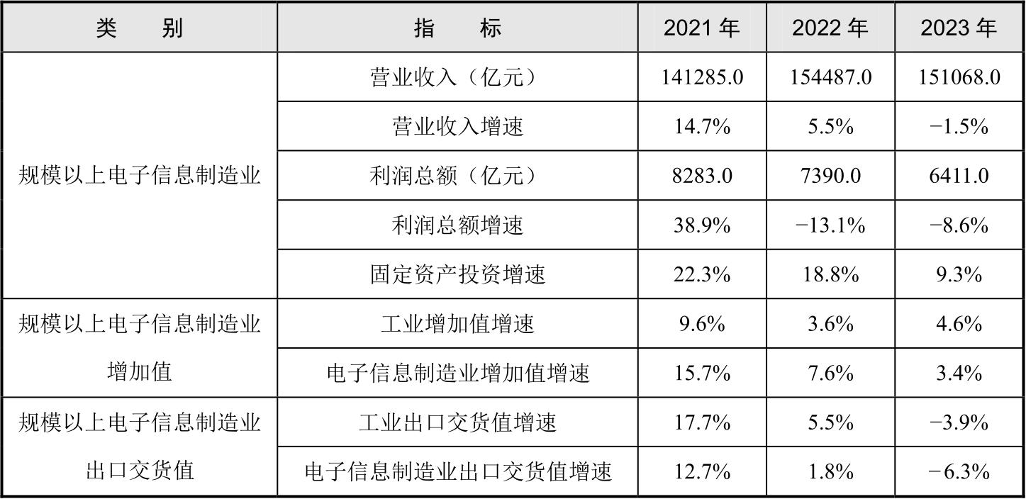 2021—2023年中国电子信息制造业数据如表1.1所示。