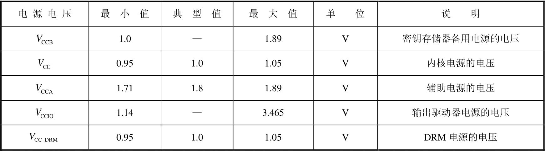 表3-1介绍了Logos2系列FPGA的电源的工作条件,HSSTLP(Logos2系列FPGA内置的高速串行收发器)的电源工作条件详见3.4节。