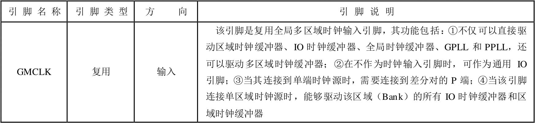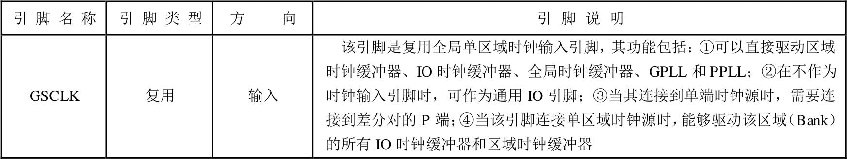 表3-5 Logos2系列FPGA时钟引脚的具体用法