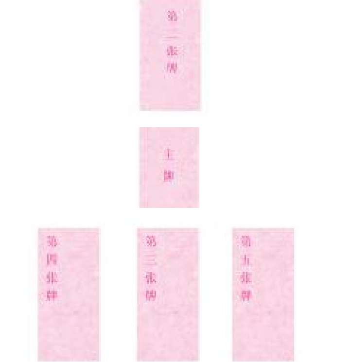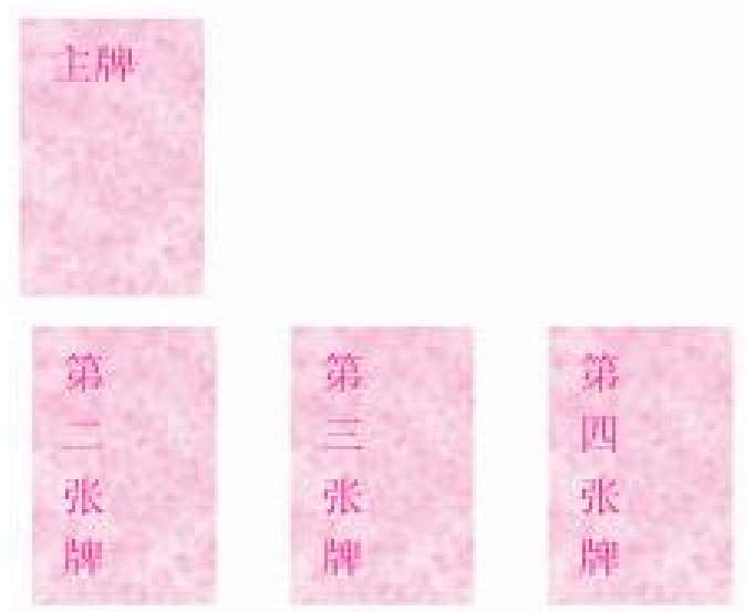 第四张放在主牌下面的正左位。第五张放在主牌下面的正右位。